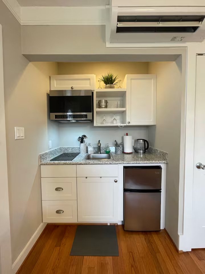 The Sage Studio is a serene retreat from the city, designed with abundant natural light, a plush queen bed, and full bathroom. A kitchenette and laundry access makes longer stays easy. Whether you’re visiting for work or rest, The Sage Studio offers a private escape with all the comforts of home in one of Houston’s most charming neighborhoods.