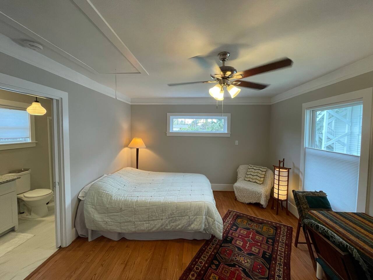 The Bluebonnet Suite is a 2/1 that connects to a secured “Jack ‘n Jill” washer/dryer shared with the Sage Studio. By arrangement, the Little Bungalow can be configured as a 3/2. Free on-site valet parking.